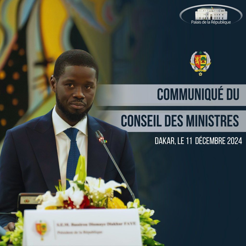 Le Chef de l’Etat, Son Excellence, Monsieur Bassirou Diomaye Diakhar FAYE a présidé, ce mercredi 11 décembre 2024, la réunion hebdomadaire du Conseil des Ministres, au Palais de la République.