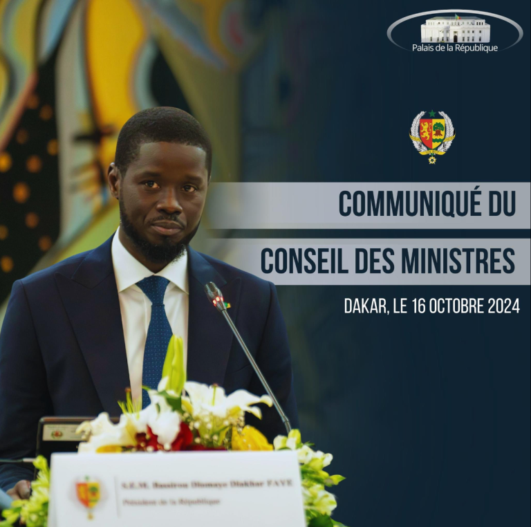 Le Chef de l’Etat, Son Excellence, Monsieur Bassirou Diomaye Diakhar FAYE a présidé, ce mercredi 16 Octobre 2024, la réunion hebdomadaire du Conseil des Ministres, au Palais de la République.