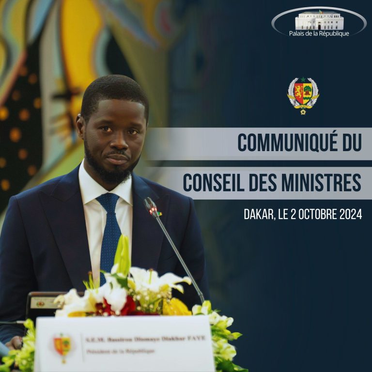 Le Chef de l’Etat, Son Excellence, Monsieur Bassirou Diomaye Diakhar FAYE a présidé, ce mercredi 02 octobre 2024, la réunion hebdomadaire du Conseil des Ministres, au Palais de la République. Le Président de la République s’est…